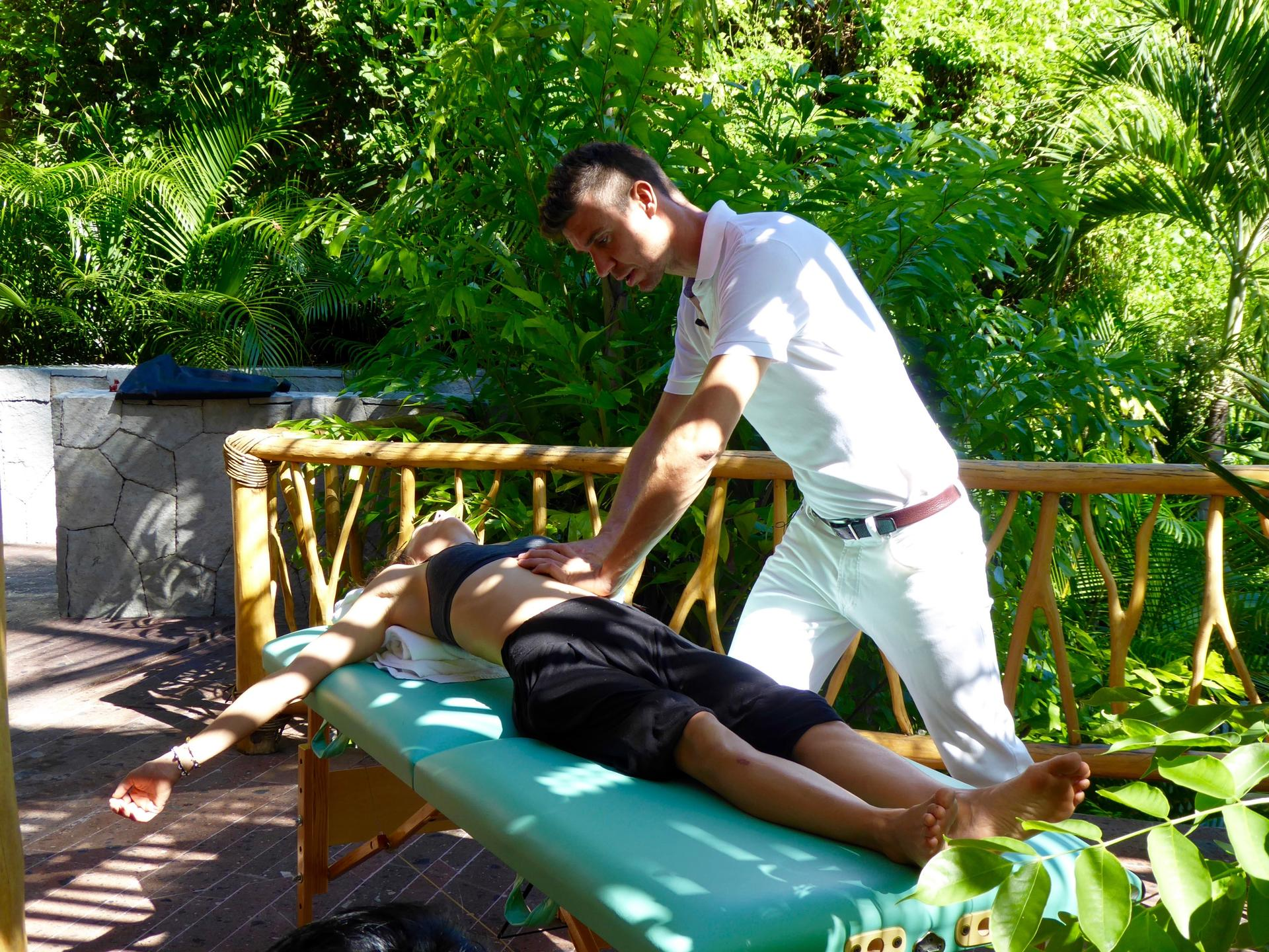 After several weeks of intense pain, walking with crutches, and not seeing any progress in my knee I took my local friend’s advice and travelled to see a famous traditional aztec healer. Using different pressure points this healer worked on my knee for 20 mins… although it was excruciatingly painful, I left the session with 90% less pain and not needing my crutches anymore. I was so amazed by this experience. That’s when I realised that I wanted to learn how to remove pain from the body and help people become healthy and pain free again.